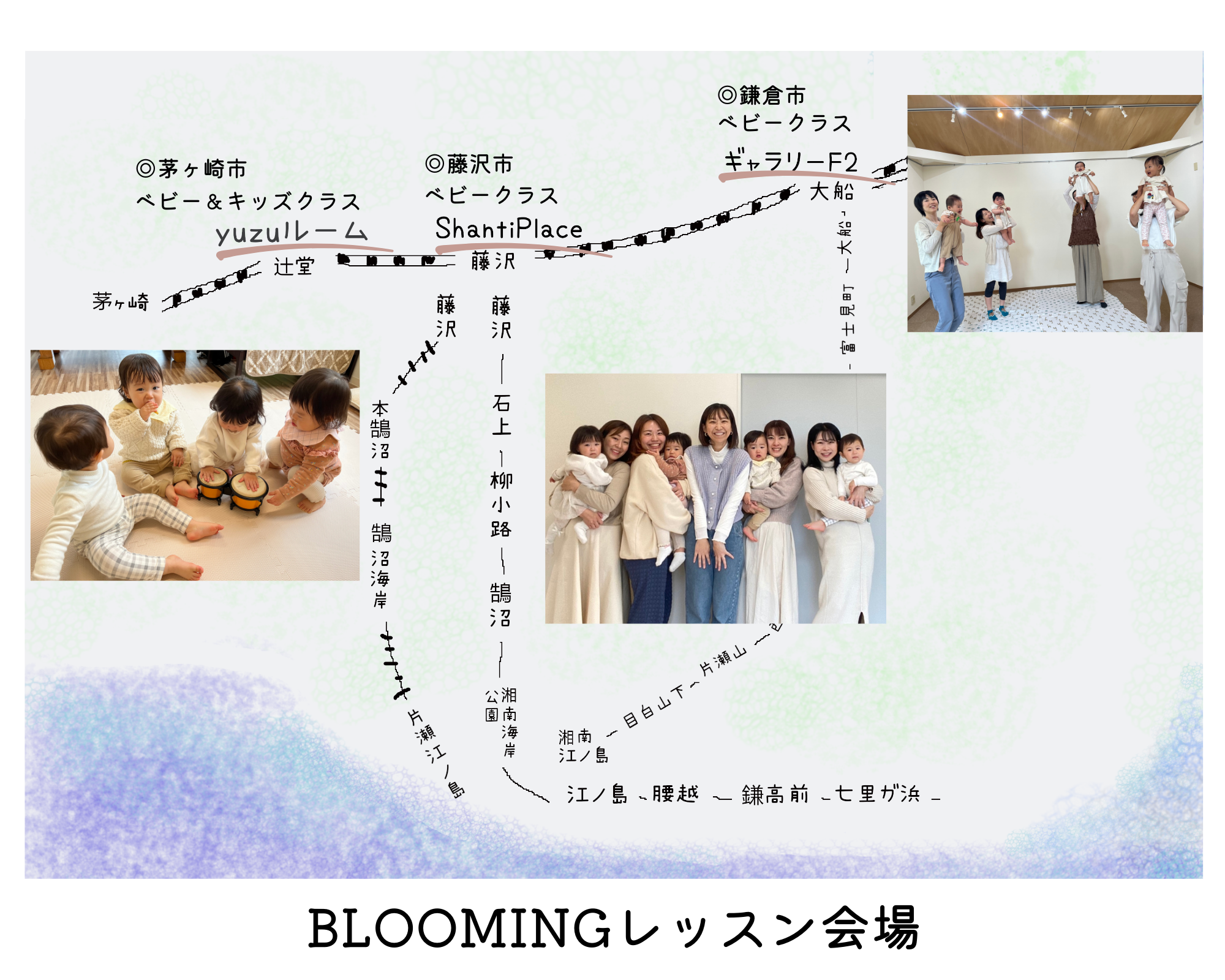 “ベビークラス”(藤沢・辻堂・大船で定期開催/0~1才)、“キッズクラス”(辻堂で不定期開催/2・3才)があります。