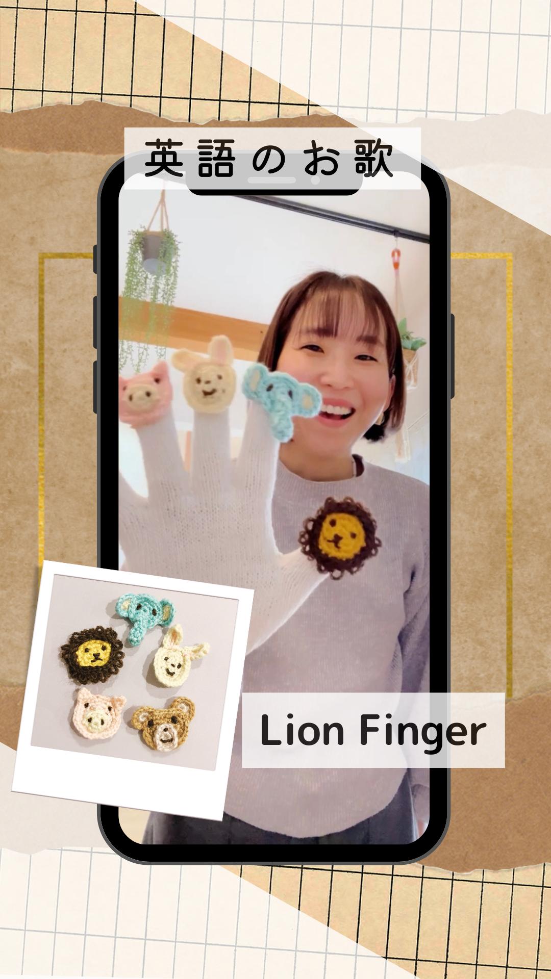実生活では小道具の手袋はありませんので、こちらの動画を見ながら一緒に歌って頂けると嬉しいです。まずライオンで、次にぞうさん、などと覚える必要はありませんし、別の動物に置き換えて歌っても自由ですので、素手のゆびさきに動物さんがついているふりをして歌ってみるのもいいですね。